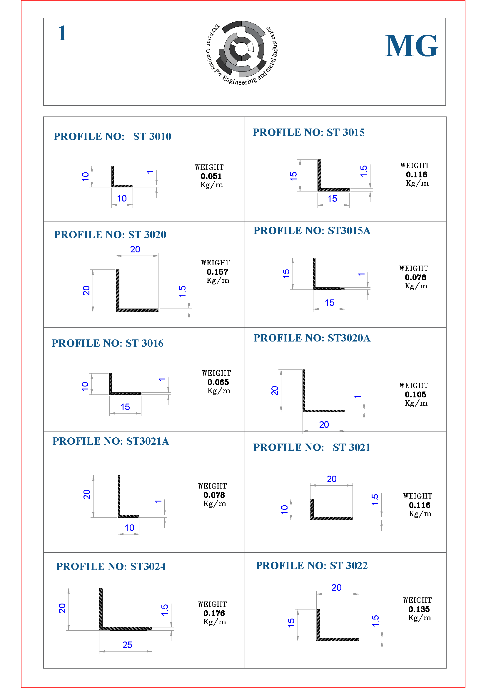 | Profile No. | Dimensions (mm) (A × B) | Thickness (mm) | Weight (kg/m) |