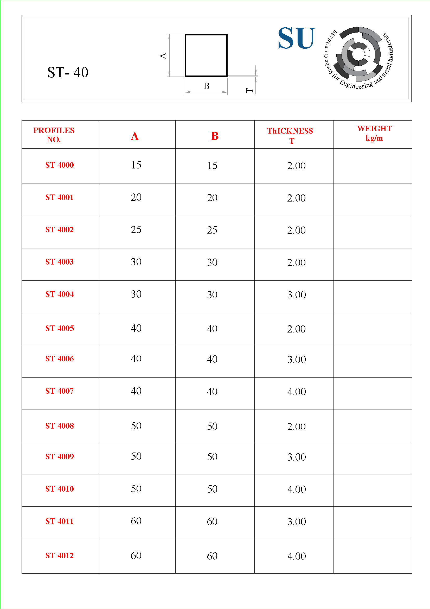 Square Hollow Profiles – ST-40 Series