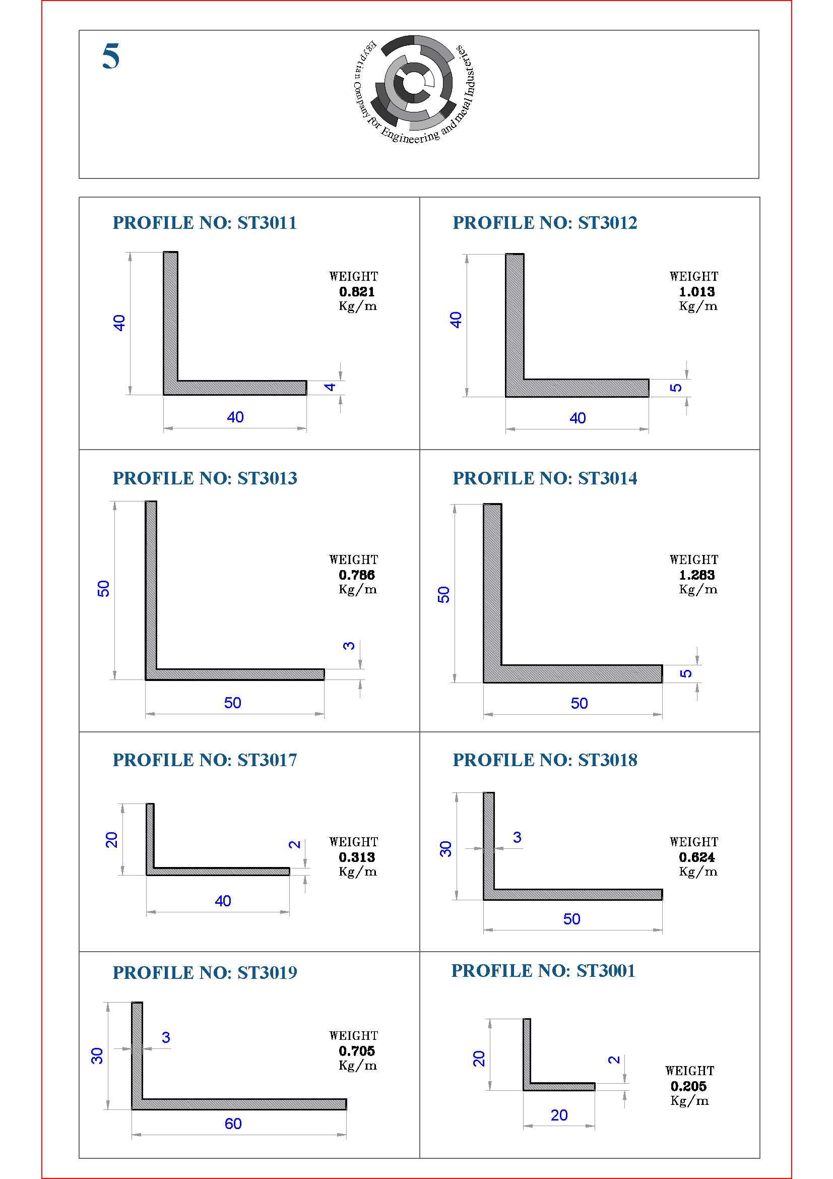 | Profile No. | Dimensions (mm) (A × B) | Thickness (mm) | Weight (kg/m) |