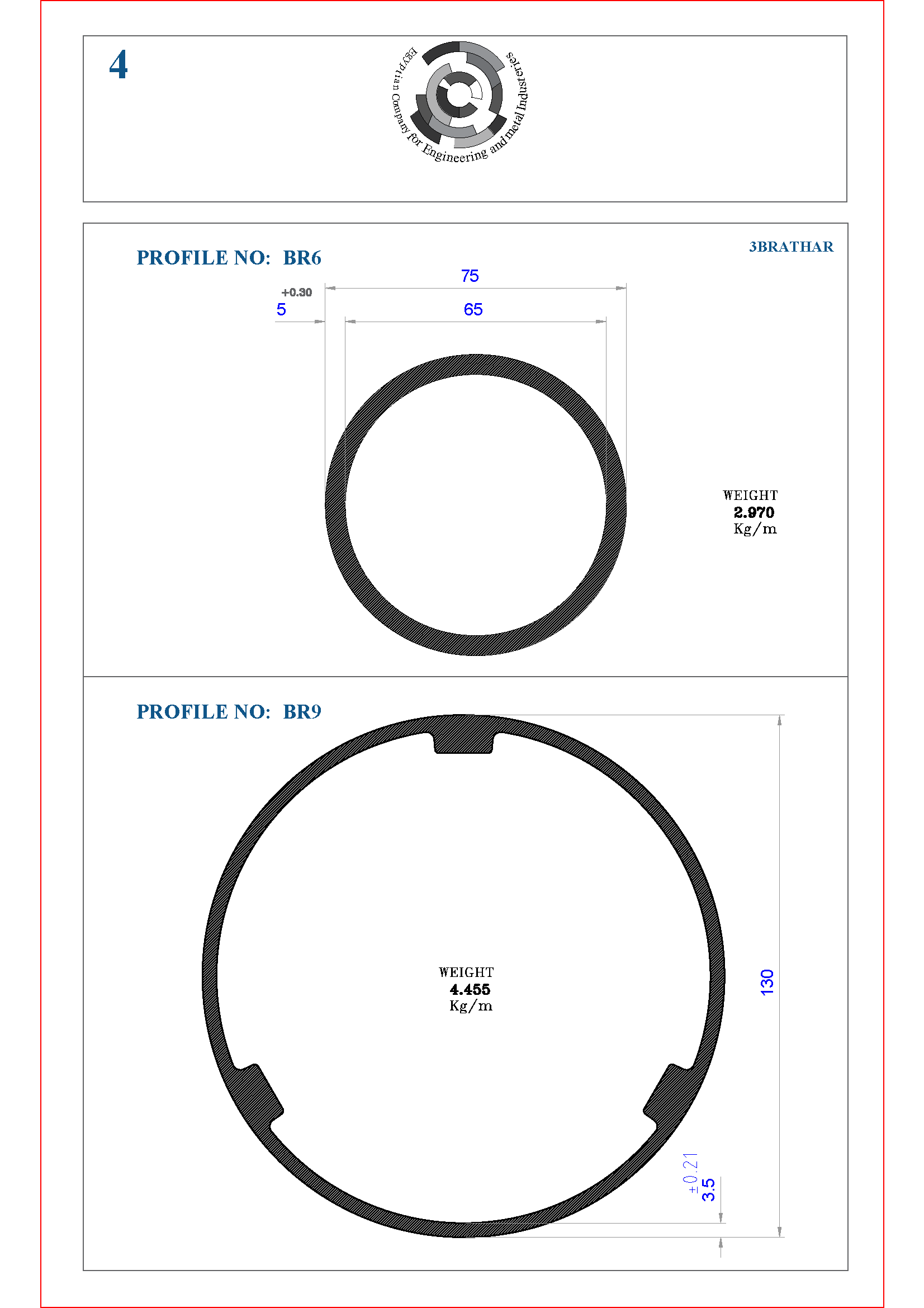 | Profile No. | Outer Diameter (mm) | Thickness (mm) | Inner Diameter (mm) | Weight (kg/m) |