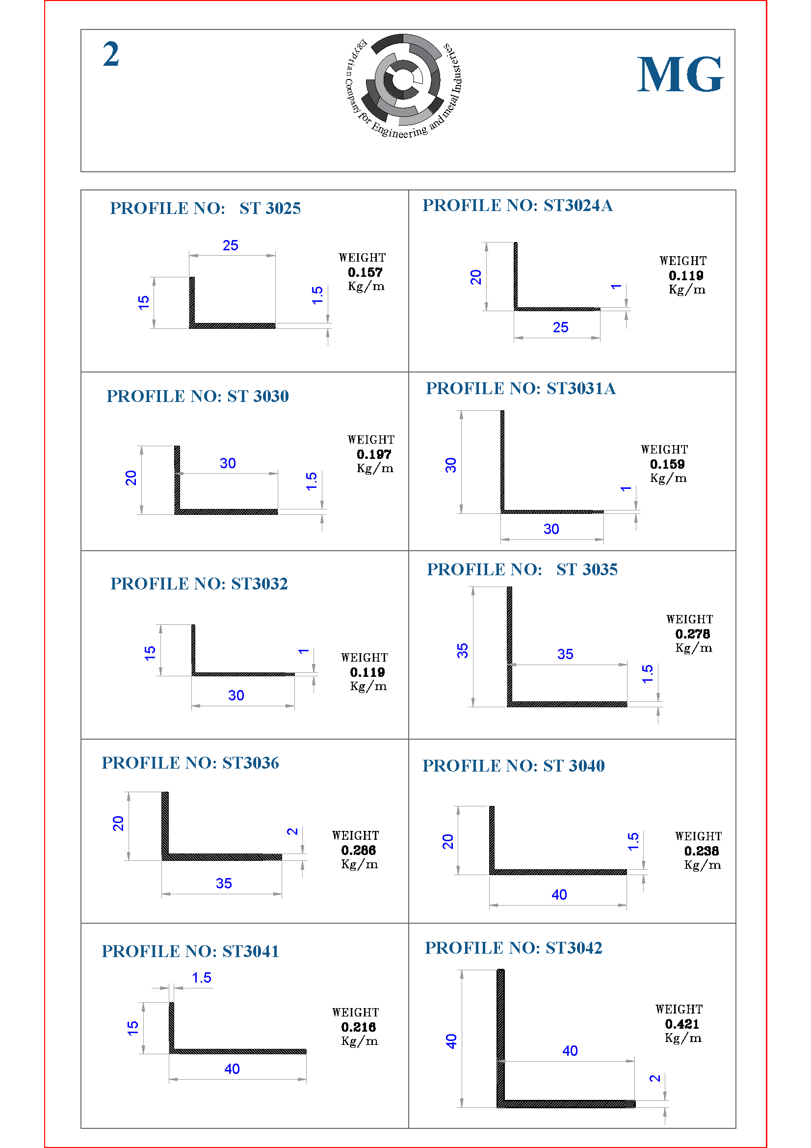 | Profile No. | Dimensions (mm) (A × B) | Thickness (mm) | Weight (kg/m) |