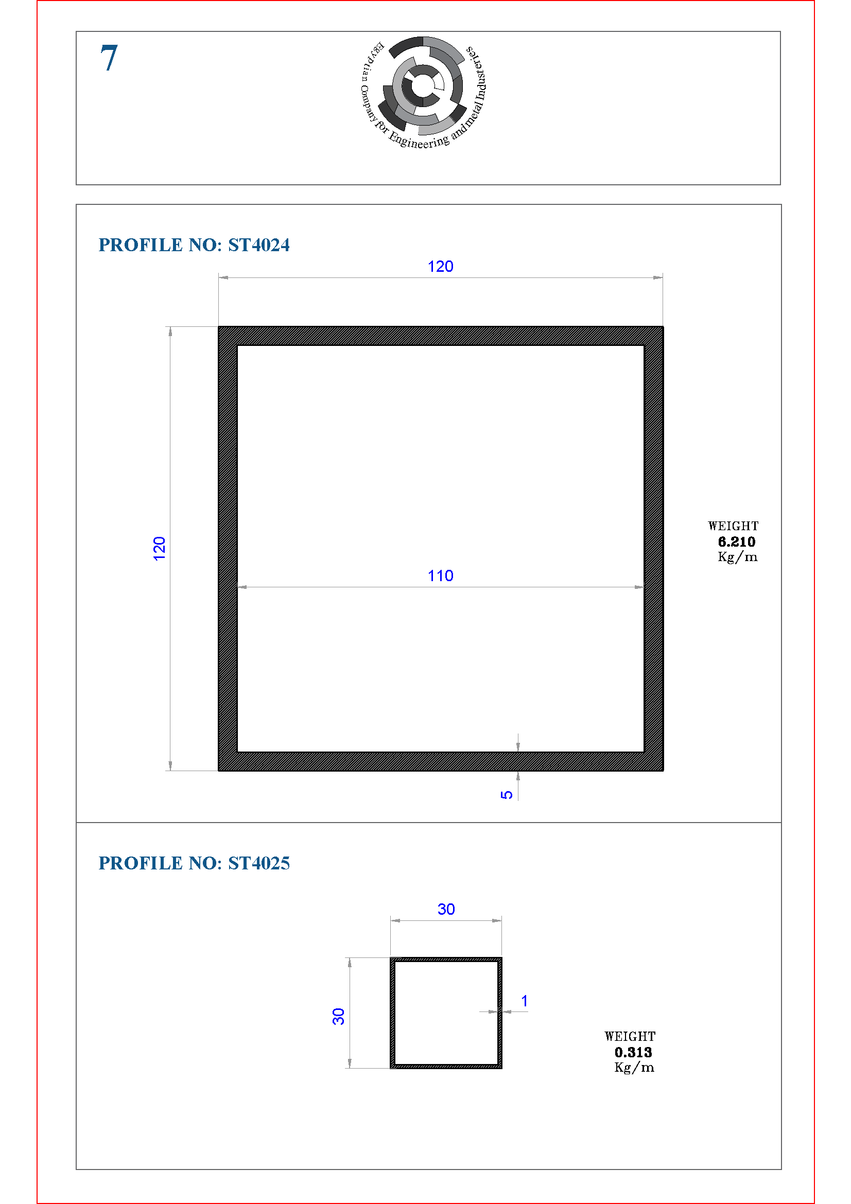 | Profile No. | Side A (mm) | Thickness T (mm) | Weight (kg/m) |