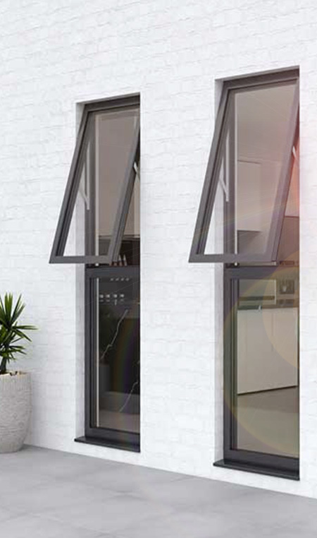 A top-hung aluminum system refers to sliding or hinged doors and windows that are suspended from the top, rather than supported by tracks or hinges at the bottom. With no visible bottom tracks and minimal framing, top-hung systems provide a sleek, minimalist appearance, contributing to a modern, streamlined architectural look.